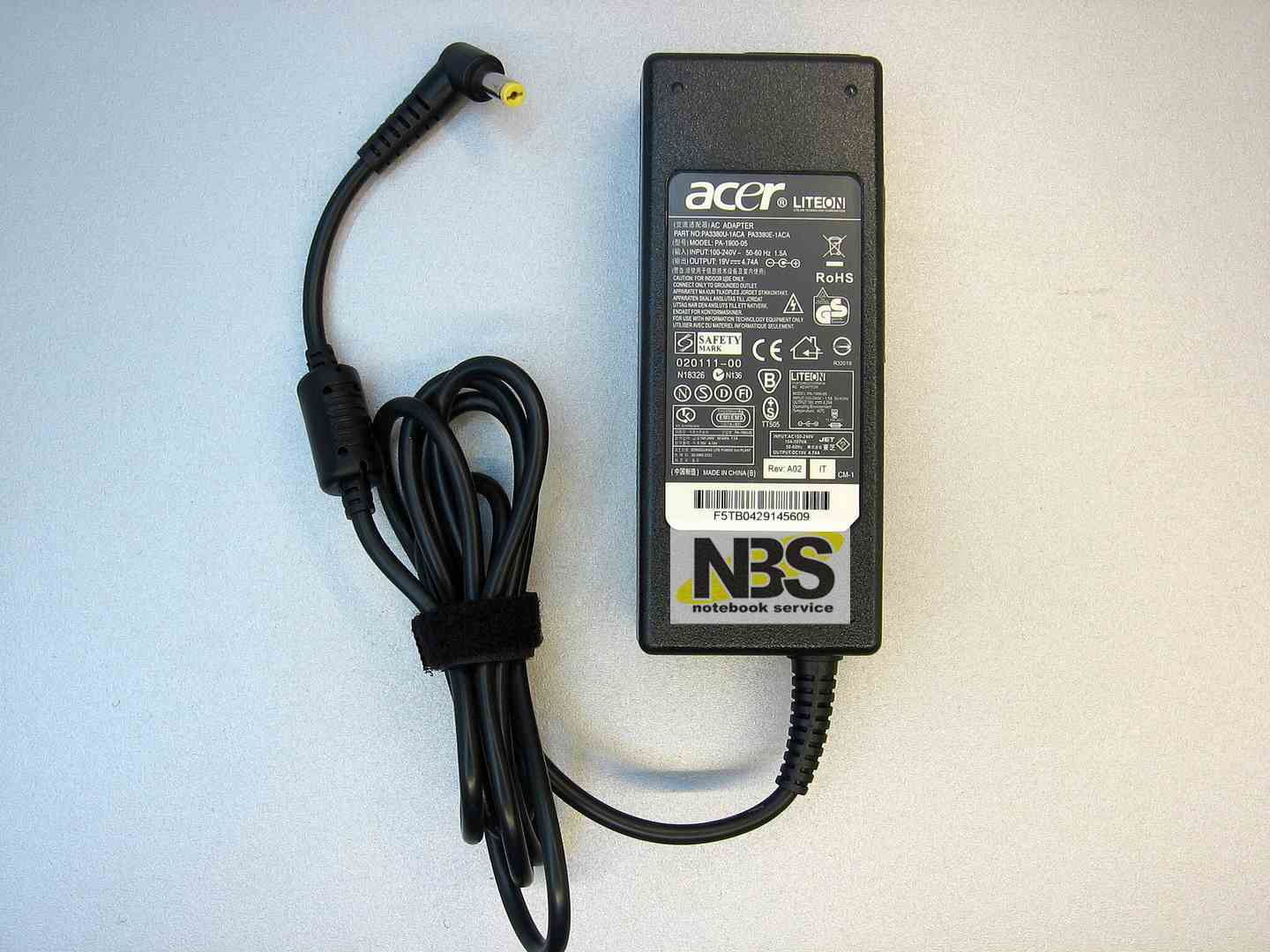 Блок питания (зарядное устройство) для Acer 19V 4.74A 90W 5.5×1.7mm обеспечивает бесперебойную работу ноутбука от электросети и одновременно заряжает его батарею. Это надежный блок питания, произведенный из высокопрочного материала. Подходит для следующих моделей ноутбуков: Aspire 3020, 3040, 3690, 4220, 4235, 4240, 5020, 5040, 5043, 5044, 5110, 5220, 5310, 5520, 5520G, 5530, 5530G, 5540, 5550, 5560, 5590, 5610, 5620, 5610Z, 5630, 5650, 5670, 5680, 5920, 7110, 7220, 7230, 9110, 9300, 9410, 9420, 9500, 9510, 3820TG, 4820TG, 5820TG, 4520, 4520G, 4535, 4535G, 4540, 4540G, 4710G, 4720ZG, 4730Z, 4730ZG, 4740, 4740G, 4745, 4745G, 4920G, 4925G, 4930, 4930G, 5536, 5536G, 5541G, 5542G, 5551G, 5553G, 5710, 5710G, 5710ZG, 5720, 5720G, 5720ZG, 5730G, 5730ZG, 5738ZG, 5739, 5739G, 5740DG, 5740G, 5741, 5741G, 5742G, 5745G, 5745PG, 5910G, 5920, 5920G, 5930G, 5935G, 5940G, 5942G, 6530G, 6920G, 6930, 6930G, 6930ZG, 6935, 6935G, 7520, 7520G, 7530, 7530G, 7535G, 7540G, 7551G, 7552G, 7720, 7720G, 7720Z, 7720ZG, 7730, 7730G, 7730ZG, 7735, 7735G, 7735Z, 7735ZG, 7738, 7738G, 7740G, 7741G, 7745G, 8530, 8530G, 8730, 8730G, 8730ZG, 8735G, 8735ZG, 8920, 8920G, 8930G, 8943G, 9410Z. Extensa 5220, 5420G, 5510Z, 5610G, 5620G, 5630G, 5630ZG, 7220, 7620, 7620G, 7620Z, 7630ZG. TravelMate 2420, 2430, 2440, 2490, 3240, 3250, 3280, 3290, 4200, 4210, 4220, 4230, 4260, 4270, 4280, 4400, 4670, 5510, 5610, 5620, 6410, 6460, 6500, 7320, 7510, 7514, 8200, 8210, 4730, 4730G, 5520, 5520G, 5530G, 5710G, 5720G, 5730G, 5740G, 6592G, 6593, 6593G, 7520, 7520G, 7530, 7530G, 7720, 7720G, 7730, 7730G, 8372G, 8572G. Ferrari 5000, ID49C, ID79C.