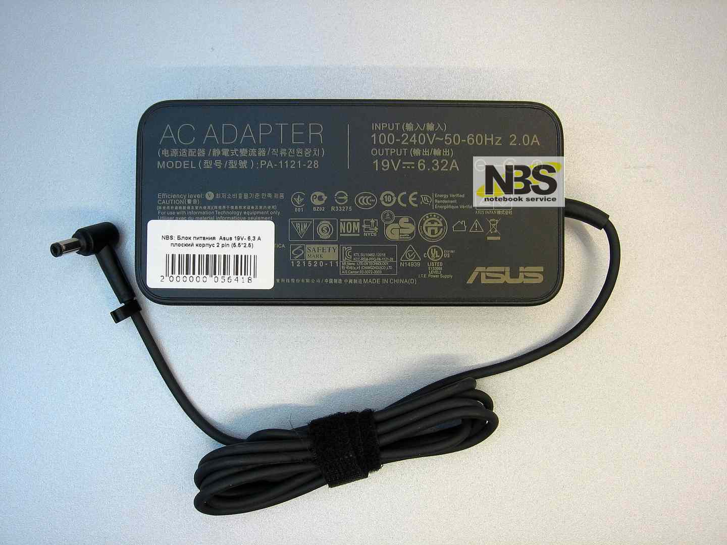 Блок питания Asus 19V-6,32 A (5.5*2.5) плоский корпус SLIM 2 pin